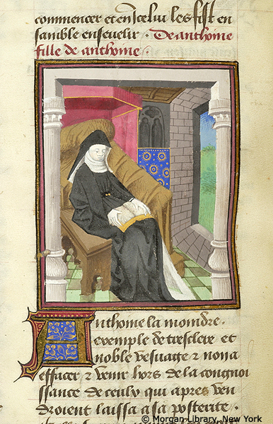 New York, Pierpont Morgan Library, M 381, f. 51v. Antonia, vedova di Druso, legge nella sua camera.