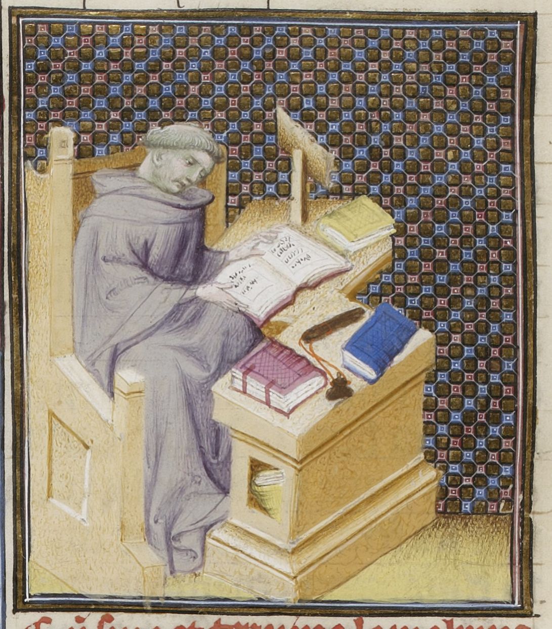 Maestro delle Clères Femmes e collaboratore (1403 c.), L'autore nel suo studio