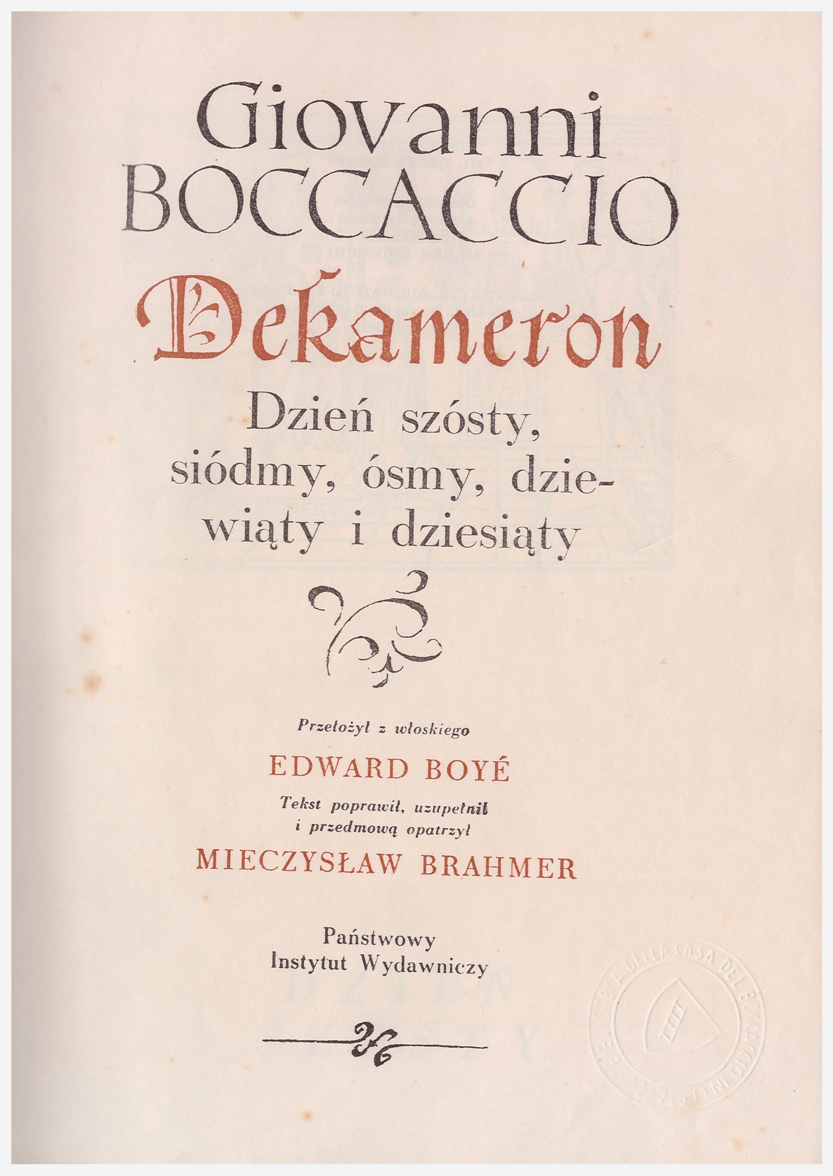 Dekameron. II / Przełożył z włoskiego Edward Boye ; tekst poprawił, uzupełnił i przedmową opatrzył Mieczyslaw Brahmer