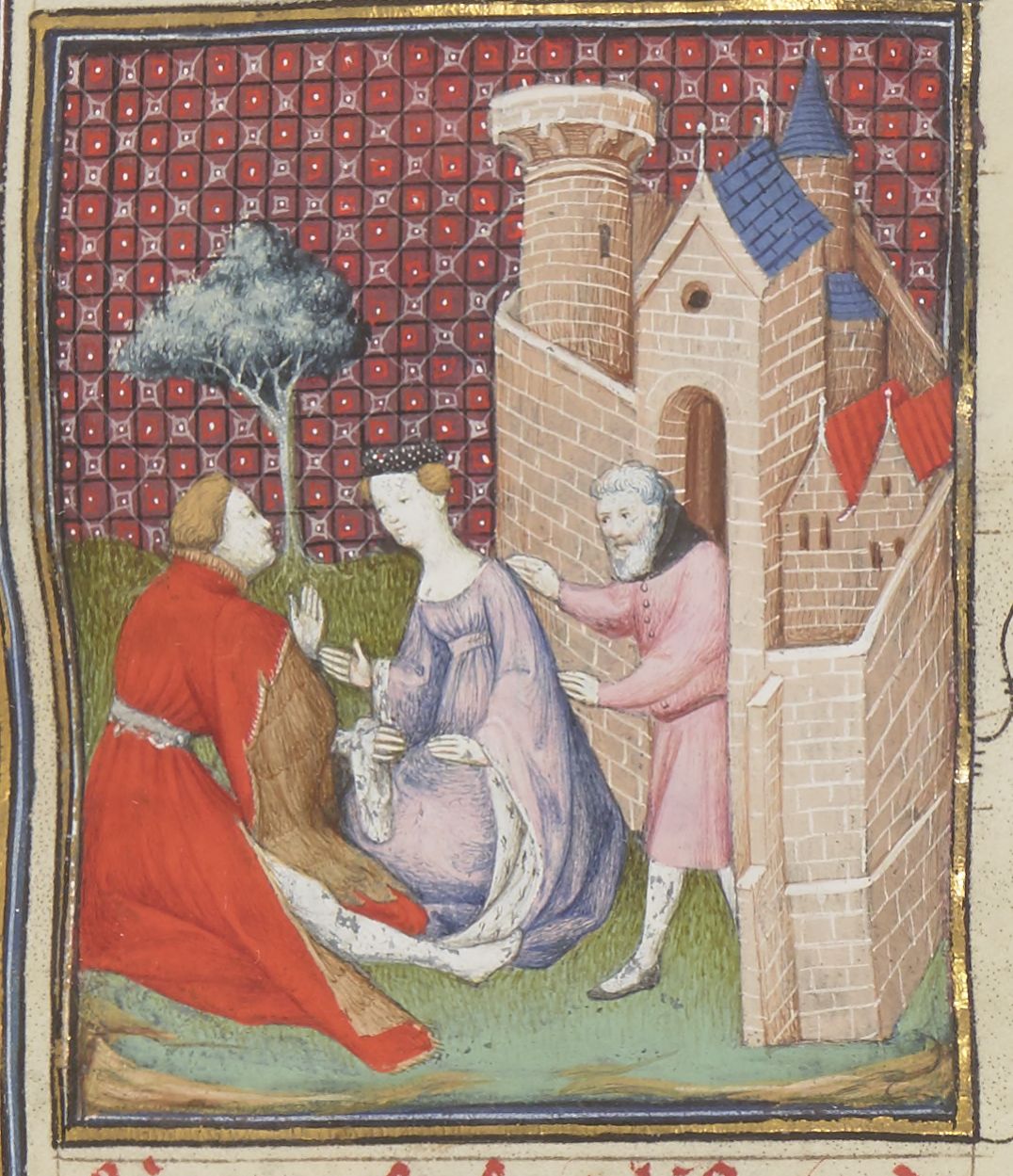 Parigi, Bibliothèque Nationale de France, Fr. 12420, f. 22r. Ipermestra viene condotta in prigione per ordine del padre Danao.