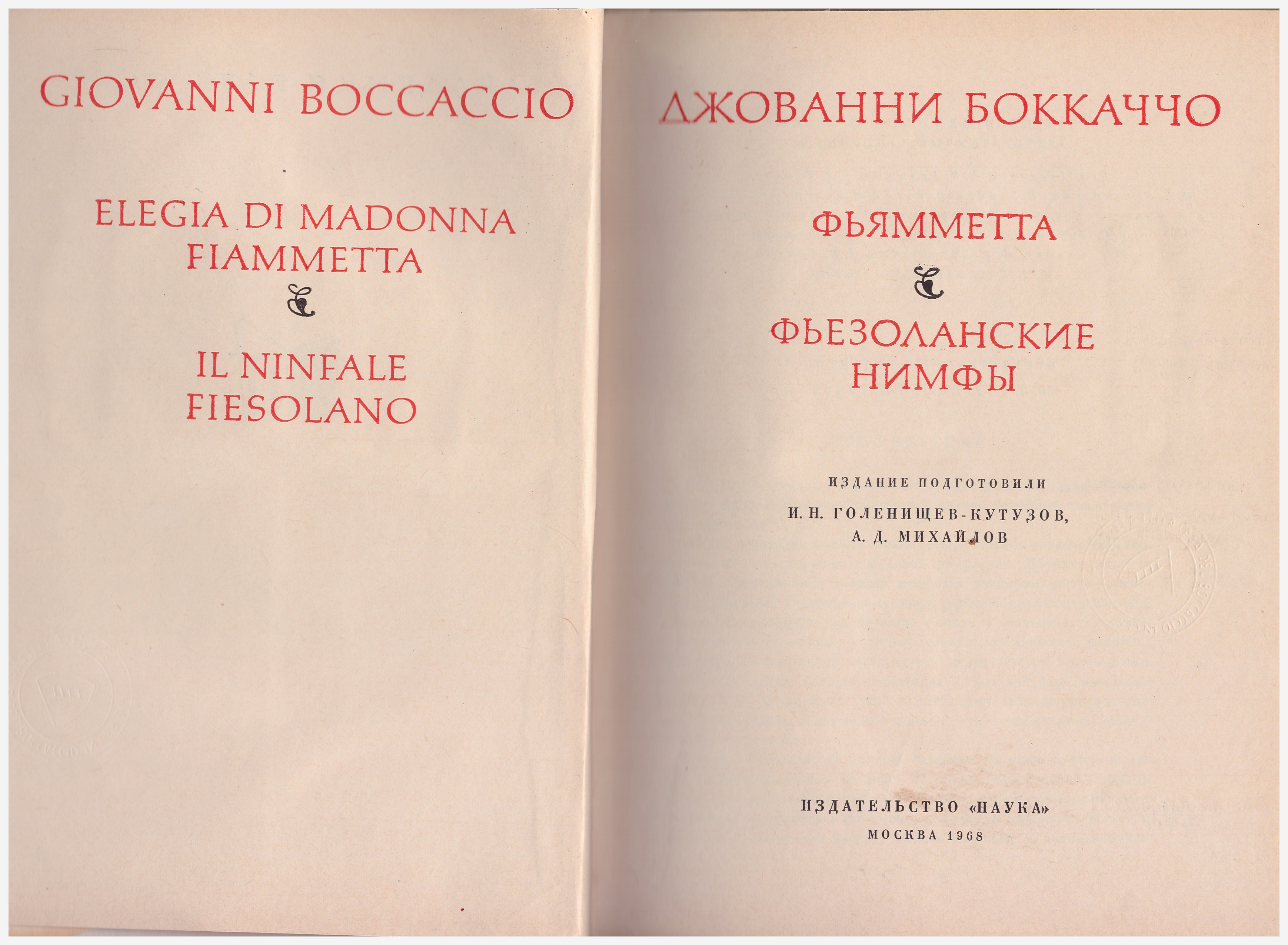 Elegia di Madonna Fiammetta. Il ninfale fiesolano