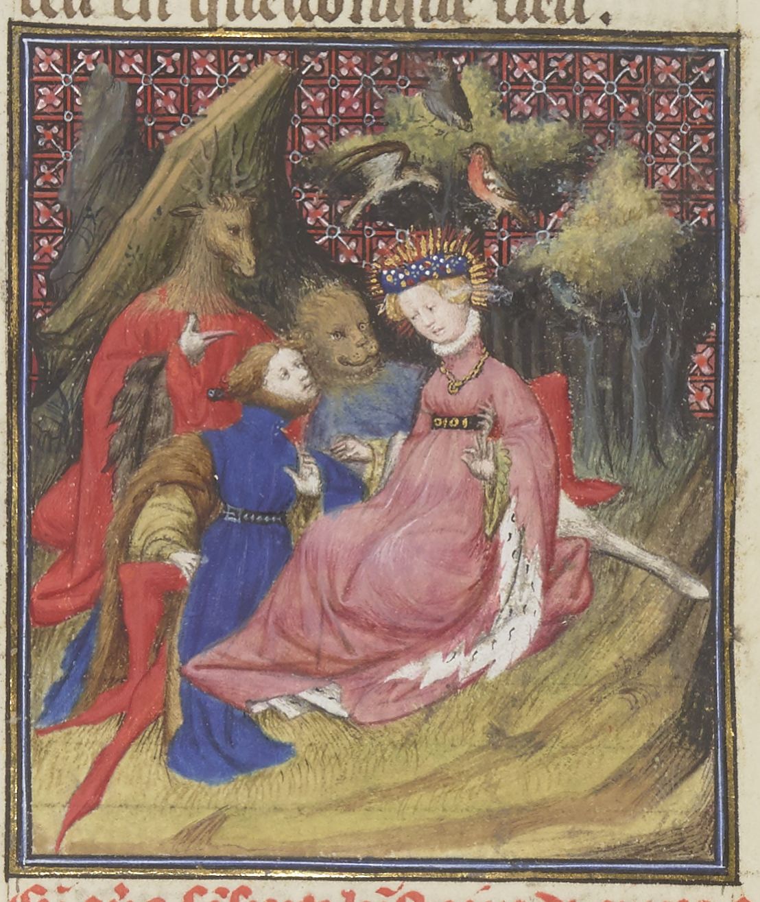 Parigi, Bibliothèque Nationale de France, Fr. 12420, f. 54r. La maga Circe trasforma i compagni di Ulisse in animali.