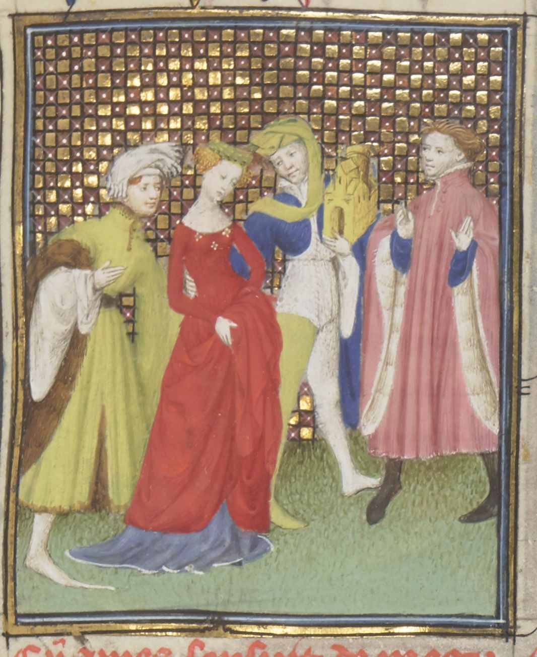 Parigi, Bibliothèque Nationale de France, Fr. 12420, f. 83r. Megulia Dotata riceve dal padre una ricca dote per il matrimonio.
