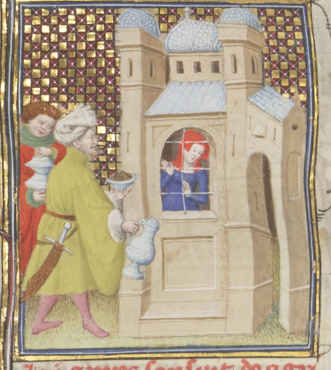 Parigi, Bibliothèque Nationale de France, Fr. 12420, f. 134v. Agrippina, moglie di Germanico, viene nutrita a forza durante la prigionia.
