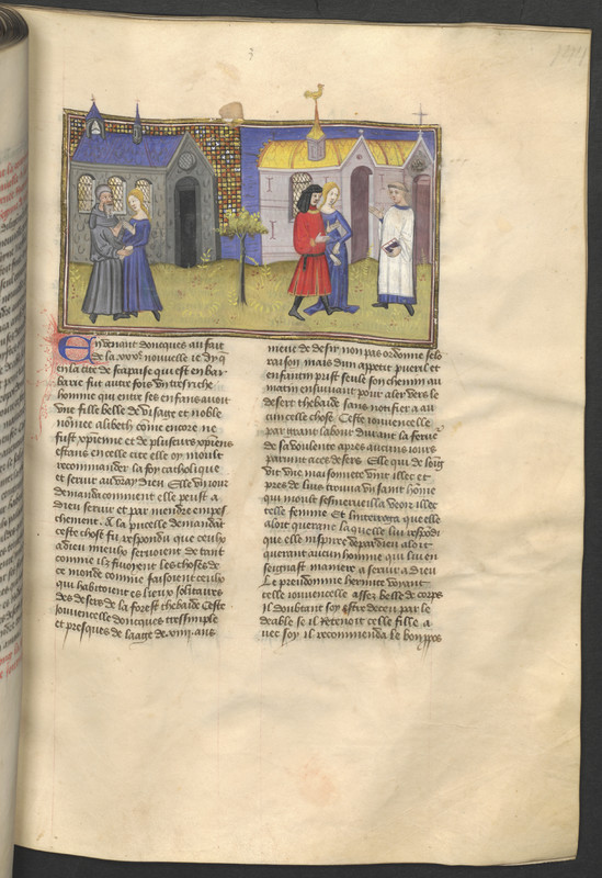 Miniatore francese (1425-1450), Alibech incontra l'eremita Rustico; Alibech sposa Neerbale