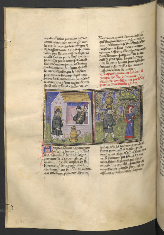 Miniatore francese (1425-1450), Il marito di Peronella cerca di vendere la botte; Peronella convince il marito a portare la botte a casa dell'amante