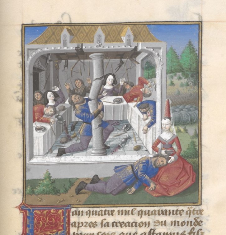 Maître François (1475 c.), Dalila taglia i capelli di Sansone; Sansone fa crollare il tetto della sala
