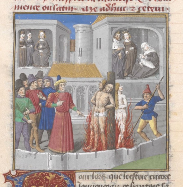 Maître François (1475 c.), Filippa da Catania viene arsa sul rogo con i due figli