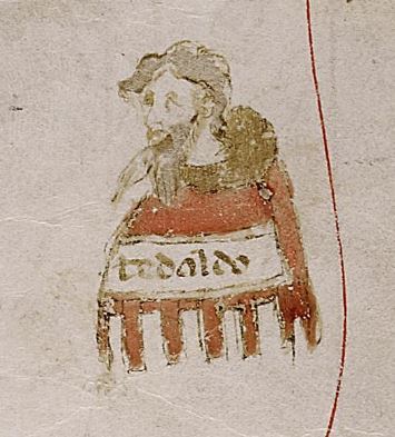Berlino, Staatsbibliothek – Preußischer Kulturbesitz, Hamilton 90, f. 39v. Manoscritto autografo di Giovanni Boccaccio. Busto di Tedaldo Elisei, in corrispondenza del richiamo "Tedaldo".
