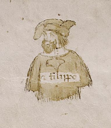 Berlino, Staatsbibliothek – Preußischer Kulturbesitz, Hamilton 90, f. 47v. Manoscritto autografo di Giovanni Boccaccio. Busto di Filippo Balducci, in corrispondenza del richiamo "et Filippo".