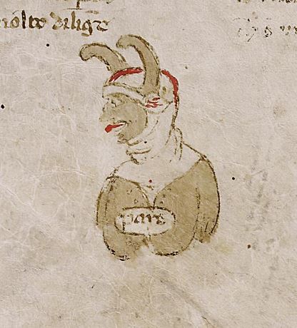 Berlino, Staatsbibliothek – Preußischer Kulturbesitz, Hamilton 90, f. 79v. Manoscritto autografo di Giovanni Boccaccio. Busto di Gianni Lotteringhi, o più probabilmente la "fantasima" evocata nel racconto, in corrispondenza del richiamo "pare".