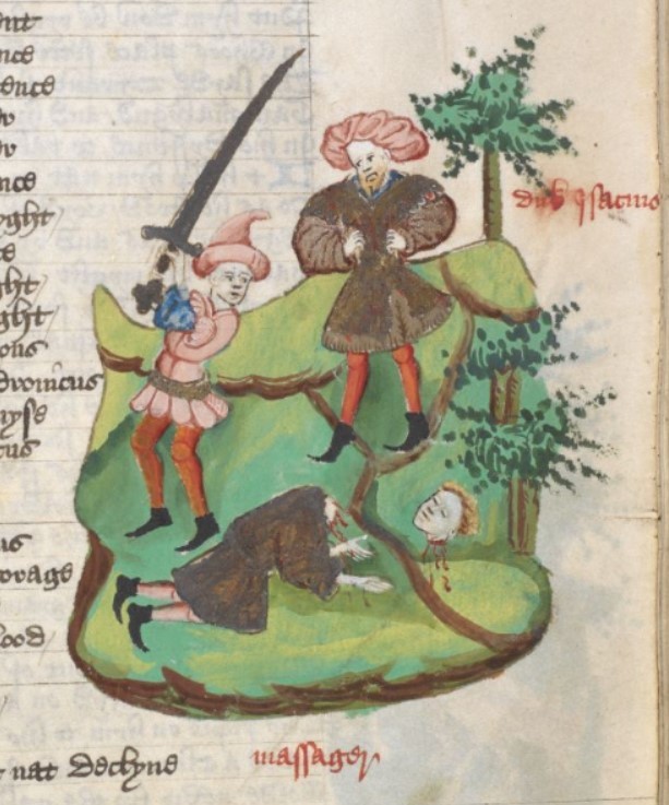 Miniatore inglese (1460 c.), Il duca Isacco ordina di decapitare il messaggero di Andronico