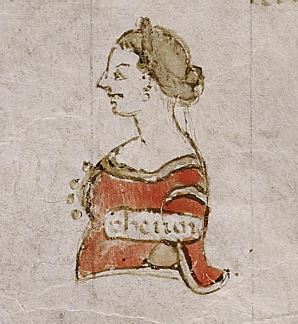 Berlino, Staatsbibliothek – Preußischer Kulturbesitz, Hamilton 90, f. 95v. Manoscritto autografo di Giovanni Boccaccio. Busto di Iancofiore, in corrispondenza del richiamo "che voi".