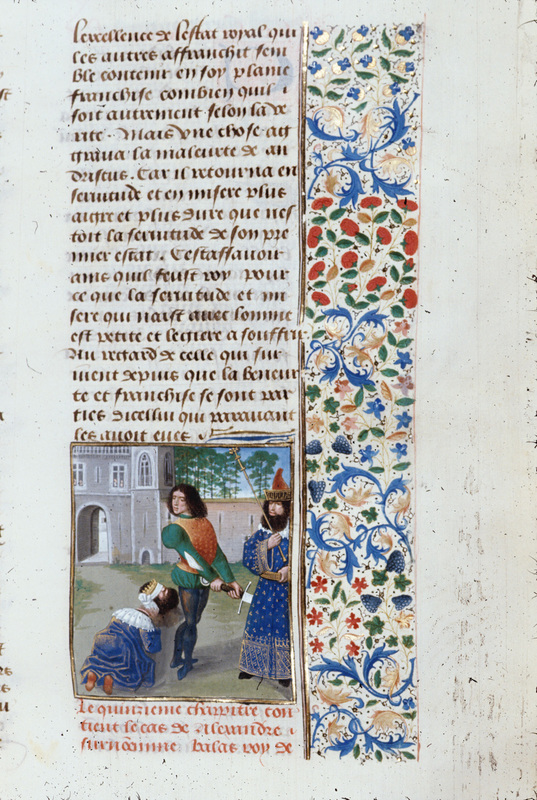 Londra, British Library, Royal 14 E V, f. 275r. Zabilo ordina la decapitazione di Alessandro Bala.