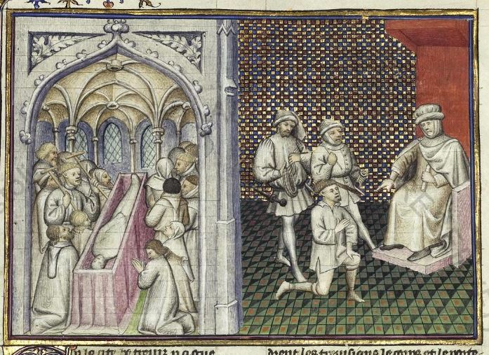 Maestro della Cité des Dames (1414-1419), Gli storpi e gli afflitti si recano presso la salma di Sant'Arrigo; Martellino compare in tribunale