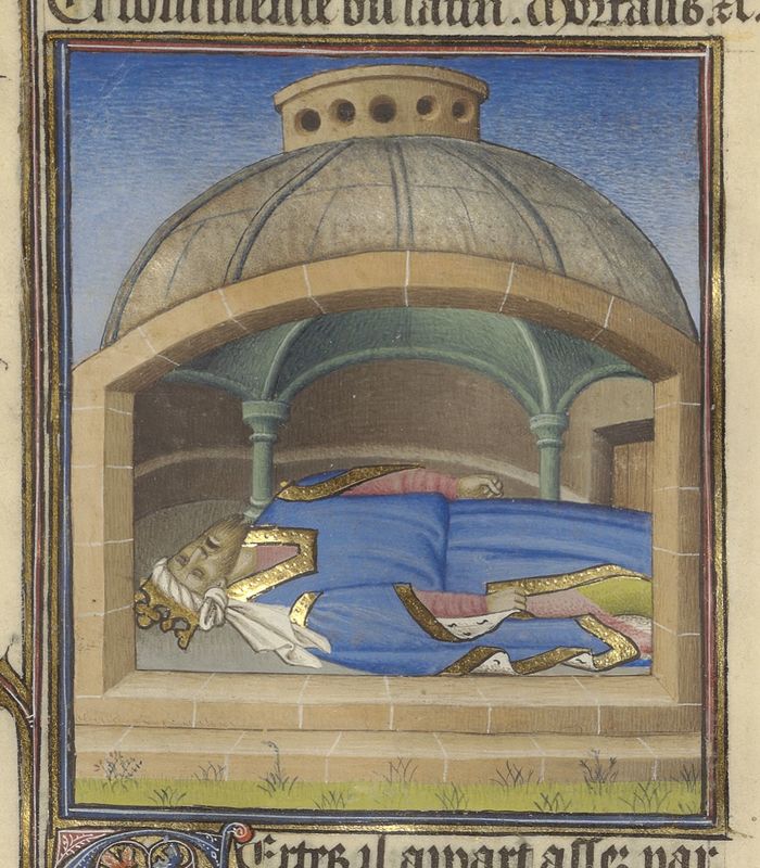 Parigi, Bibliothèque de l'Arsenal, 5193, f. 72v. La morte di Sedecia in prigione.