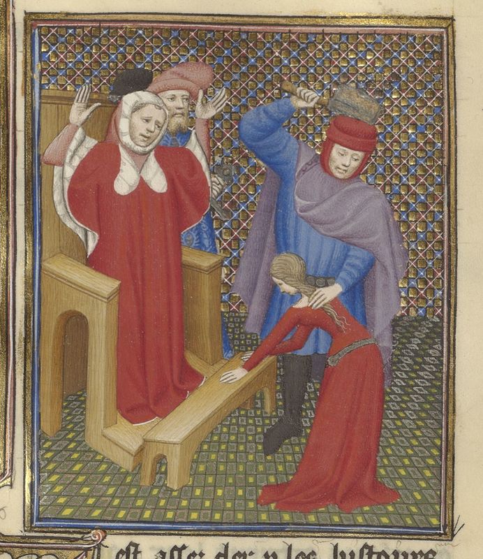 Parigi, Bibliothèque de l'Arsenal, 5193, f. 113v. Virginio uccide la figlia Virginia per sottrarla alla schiavitù.