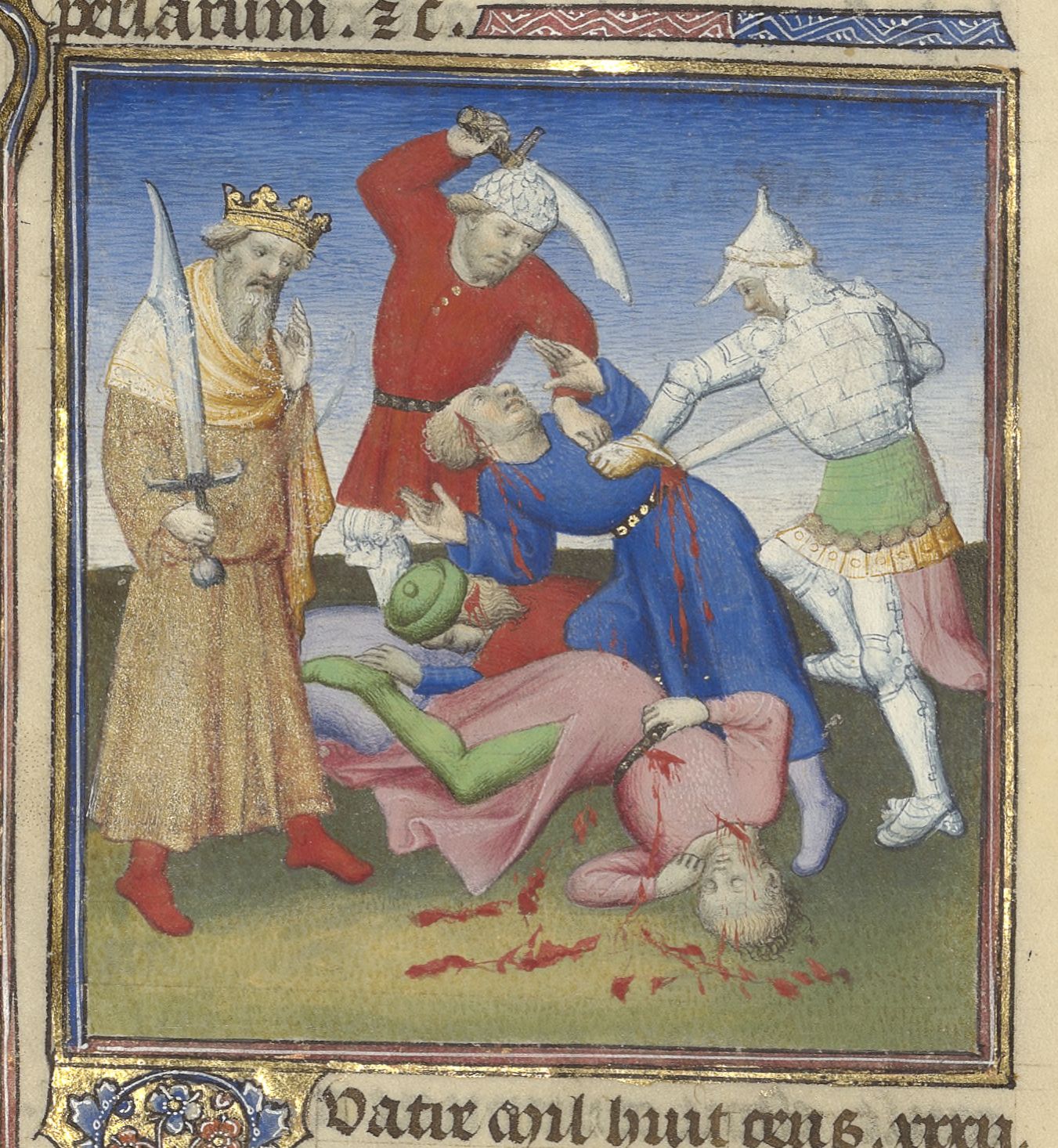 Parigi, Bibliothèque de l'Arsenal, 5193, f. 133v. Artaserse ordina il massacro dei propri figli.