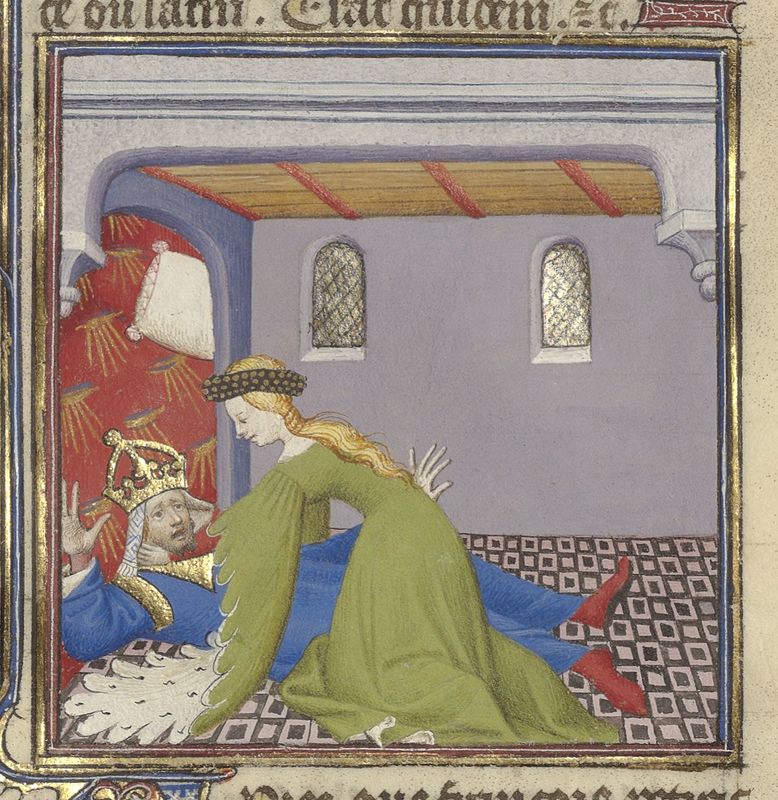 Parigi, Bibliothèque de l'Arsenal, 5193, f. 314r. Marzia, la favorita dell'imperatore, strangola Commodo nella sua camera.