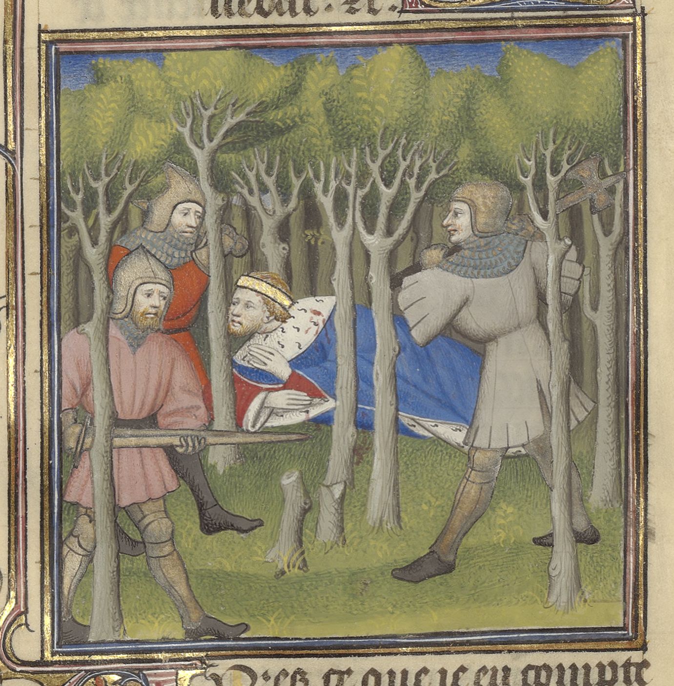 Parigi, Bibliothèque de l'Arsenal, 5193, f. 375r. Ernesto, duca di Svevia, viene assassinato nella foresta.