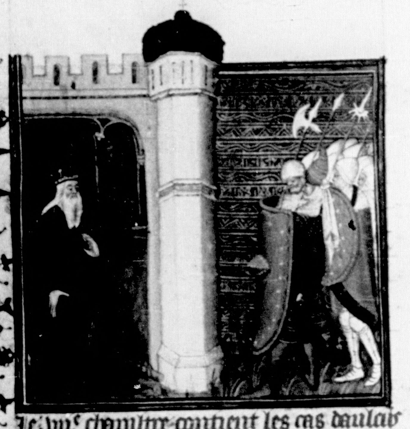 Parigi, Bibliothèque Nationale de France, Fr. 226, f. 40v. Re Zimri (Zambri) si getta nel rogo del suo palazzo per sfuggire ai soldati assalitori.