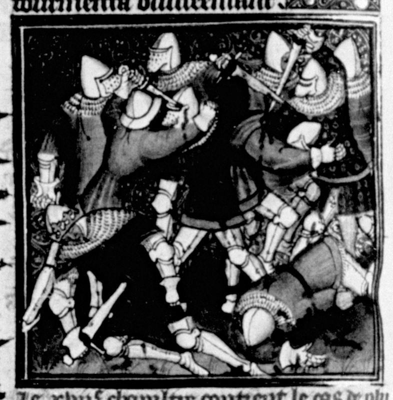 Parigi, Bibliothèque Nationale de France, Fr. 226, f. 118v. Tolomeo viene ucciso durante una battaglia contro l'esercito dei Galati.