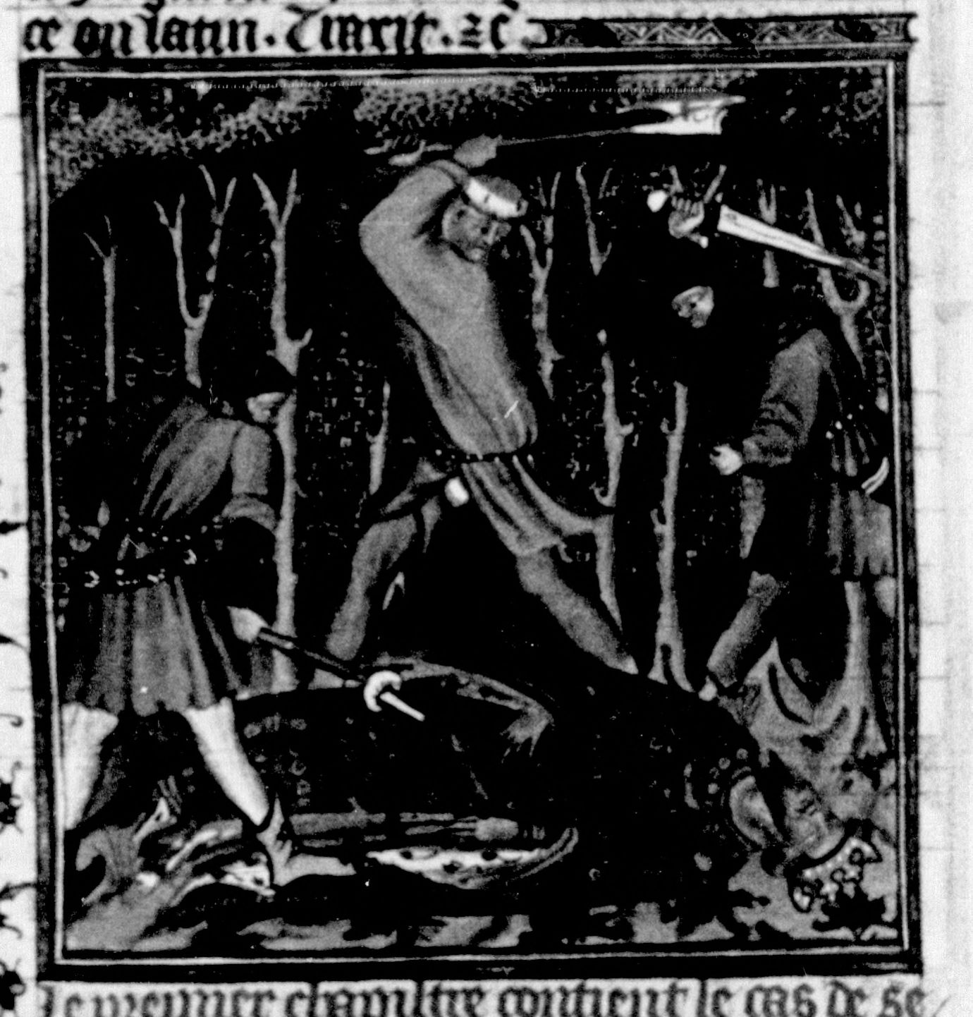 Parigi, Bibliothèque Nationale de France, Fr. 226, f. 125v. Antioco viene ucciso nel bosco dai banditi.