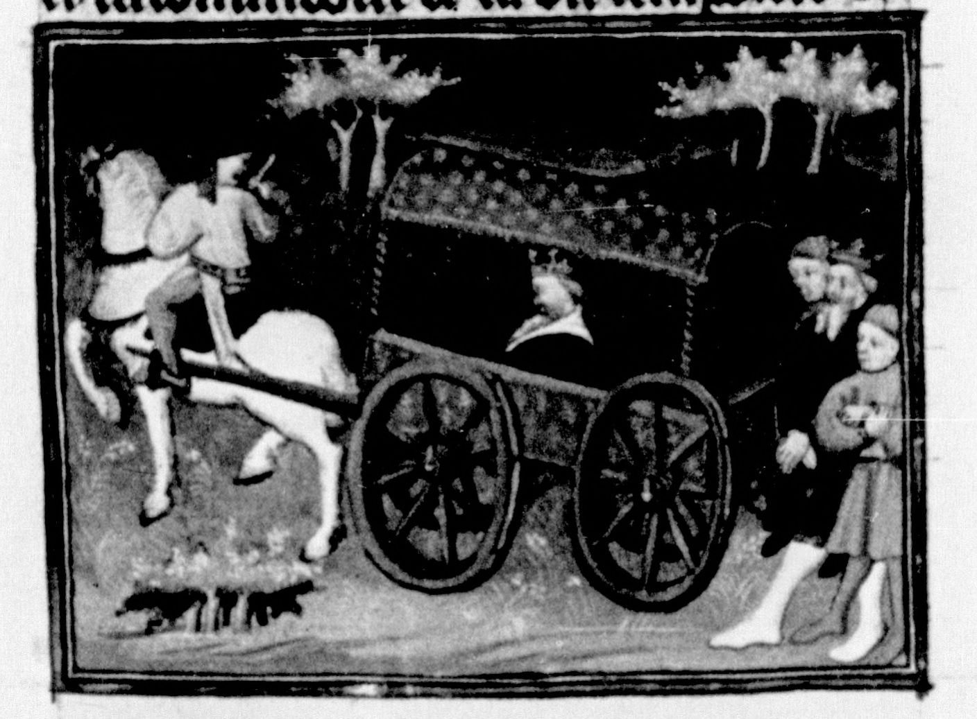 Parigi, Bibliothèque Nationale de France, Fr. 226, f. 143v. Lucio Emilio Paolo durante il suo trionfo esibisce il re Perseo ed i suoi figli prigionieri.
