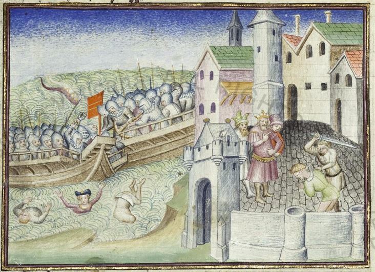 Maestro della Cité des Dames (1414-1419), Gerbino abborda la nave della figlia del re di Tunisi; Gerbino viene decapitato