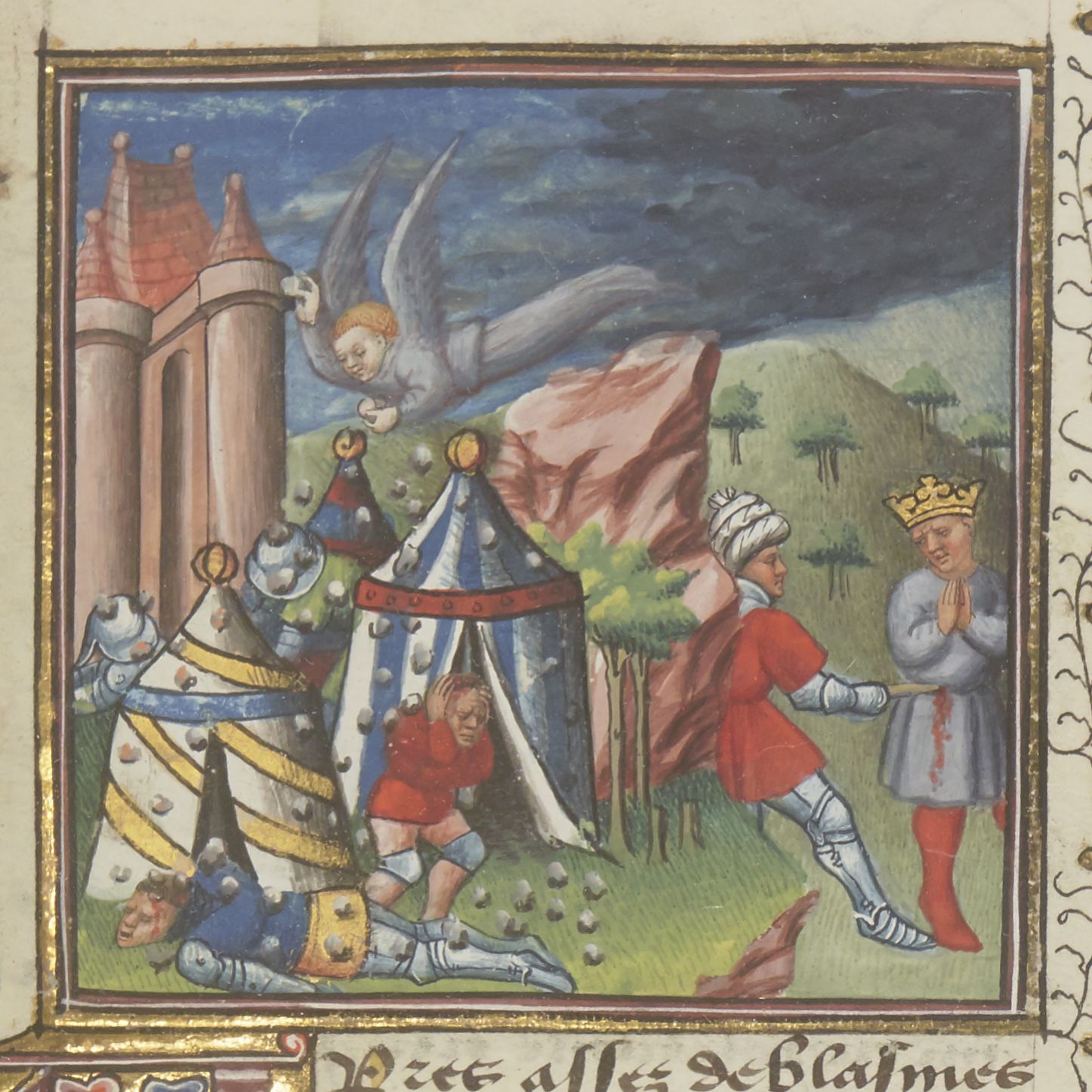 Maestro del Roman de la Rose di Vienna (1435-1440), L'angelo di Dio colpisce l'esercito di Sennacherib