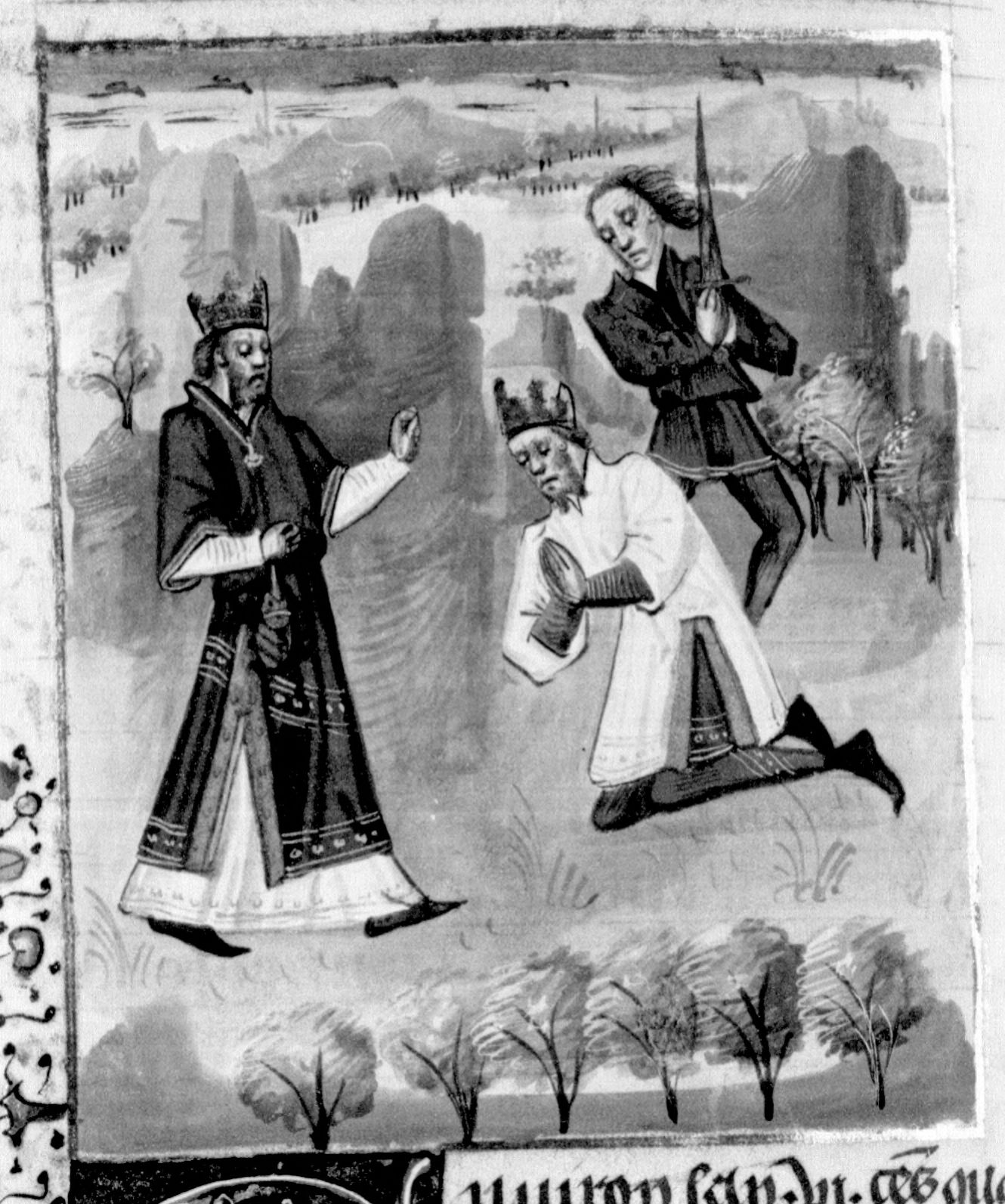 Parigi, Bibliothèque Nationale de France, Fr. 232, f. 211v. Mitridate III viene assassinato per ordine del fratello Orode.