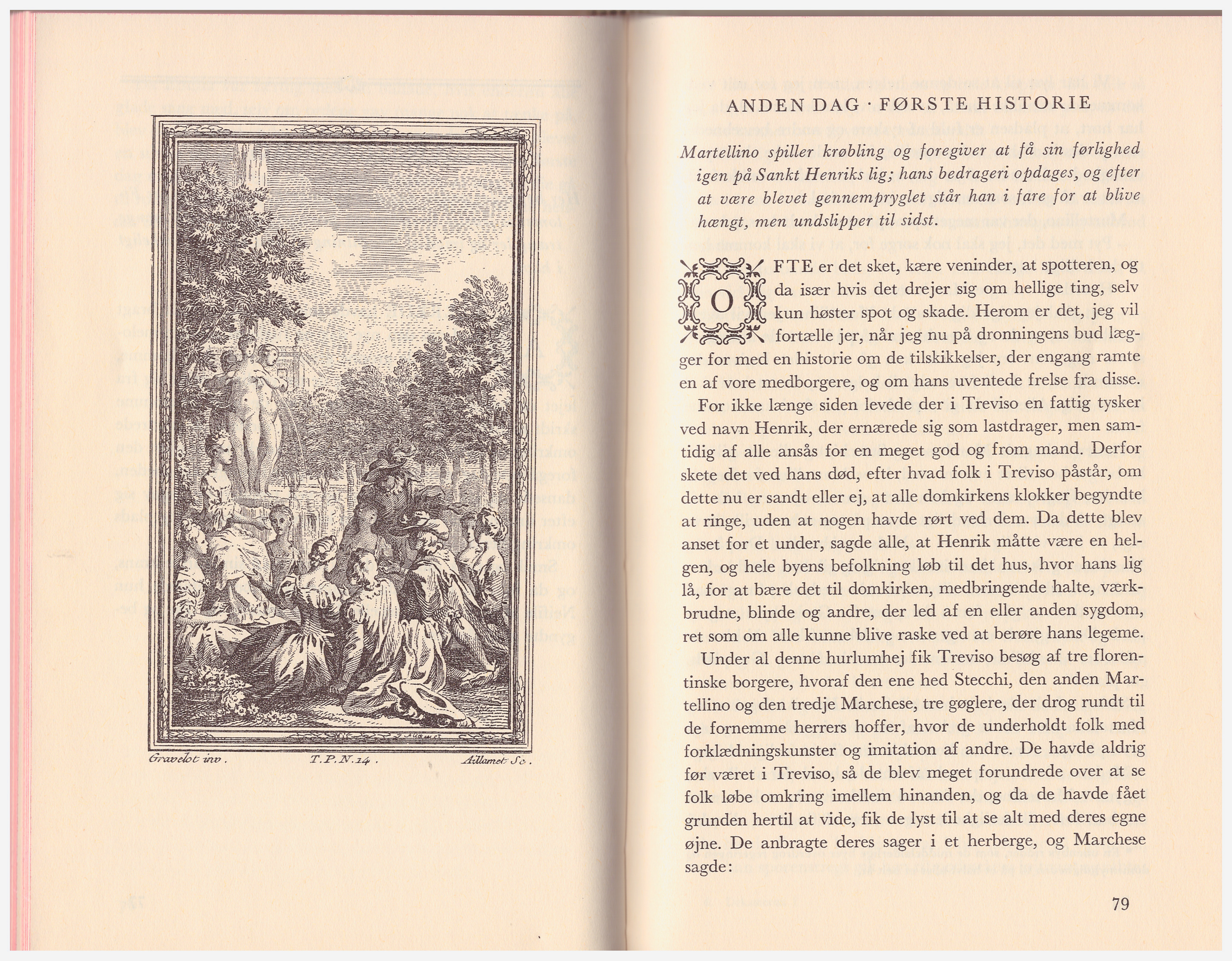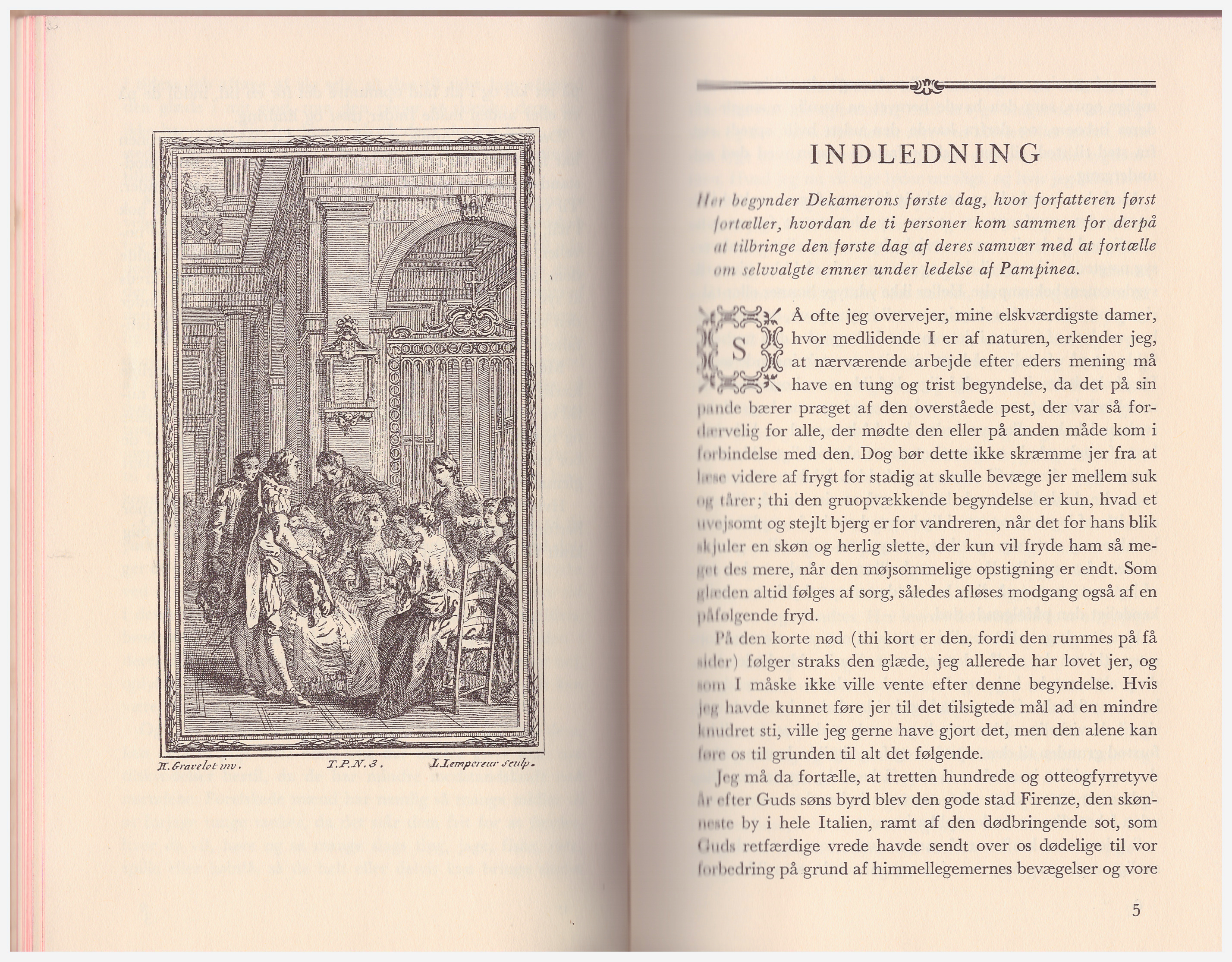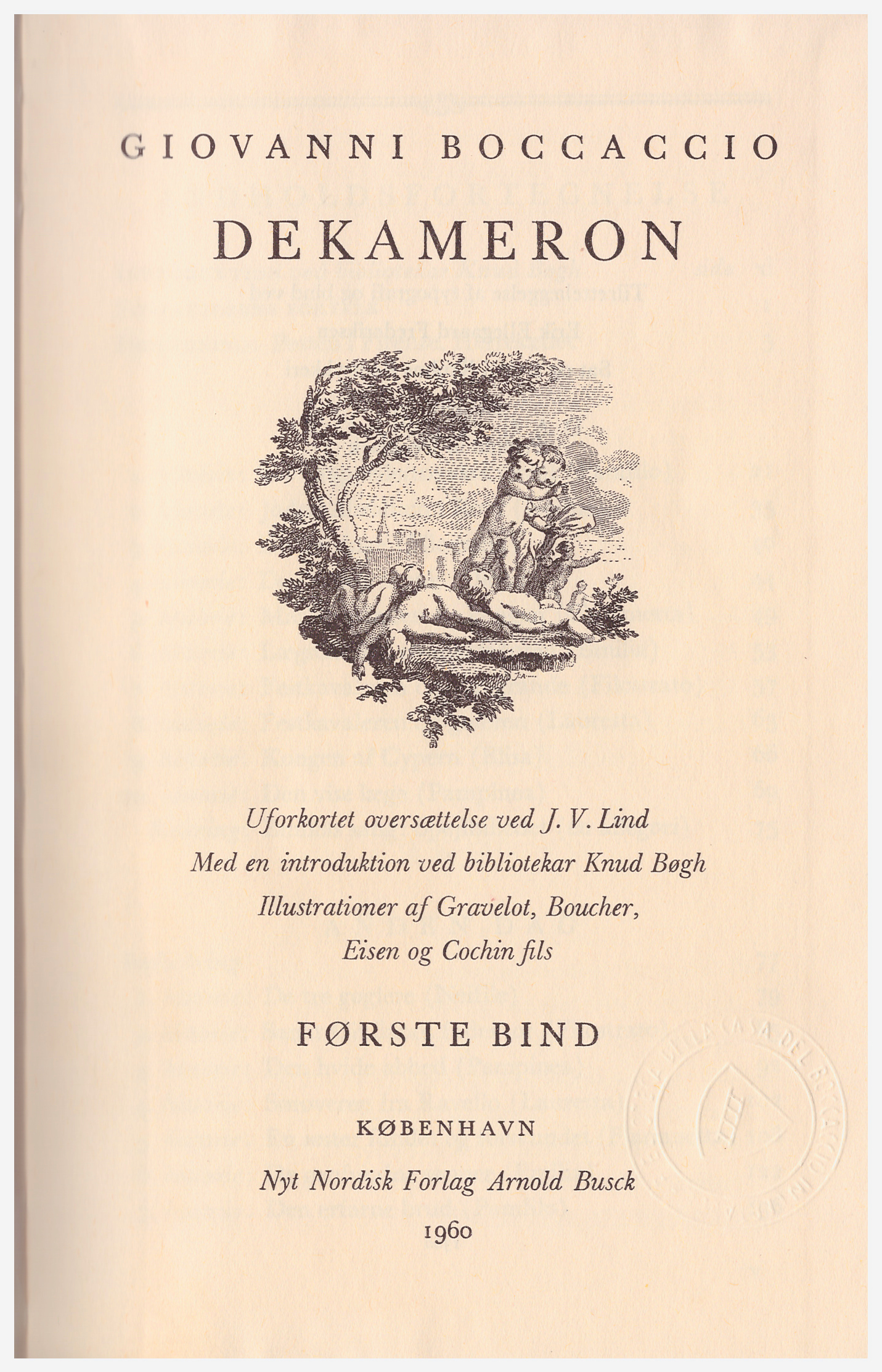 Dekameron. I / Uforkotet oversaettelse ved J.V.Lind ; illustrationer af Gravelot, Boucher, Eisen, Cochin fils