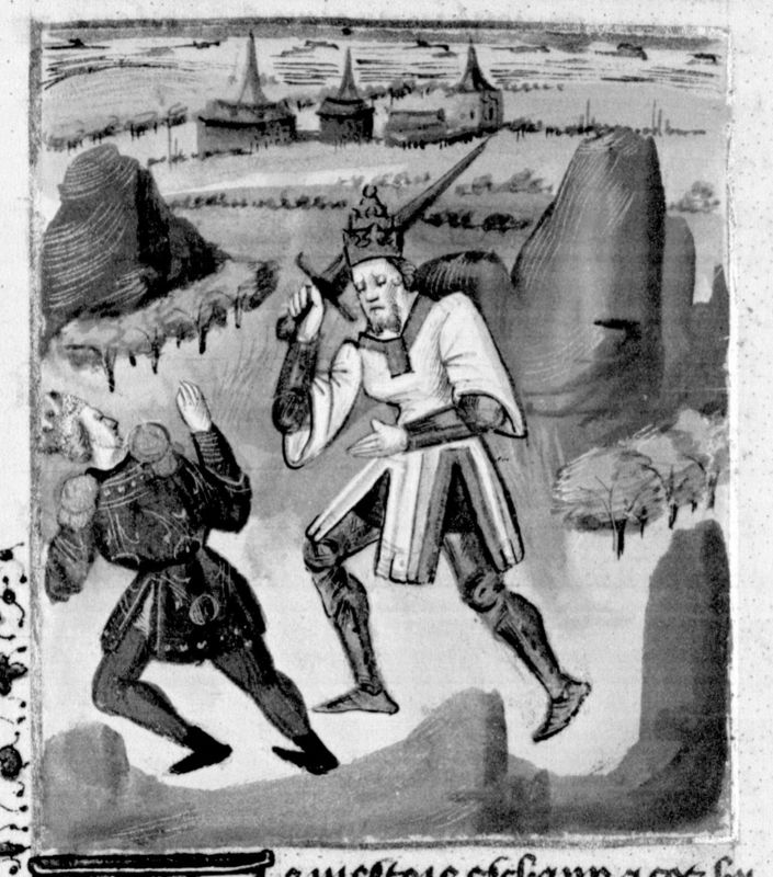 Parigi, Bibliothèque Nationale de France, Fr. 232, f. 313v. Un sovrano viene assassinato da un altro re.