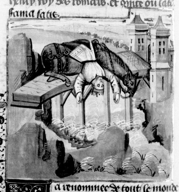 Miniatore francese (1425-1450), Arrigo precipita da un ponte con il suo cavallo
