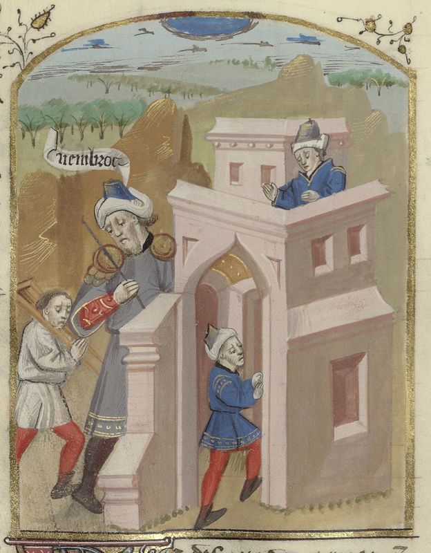 Miniatore francese (1425-1450), Nembrot sovrintende alla costruzione della Torre di Babele