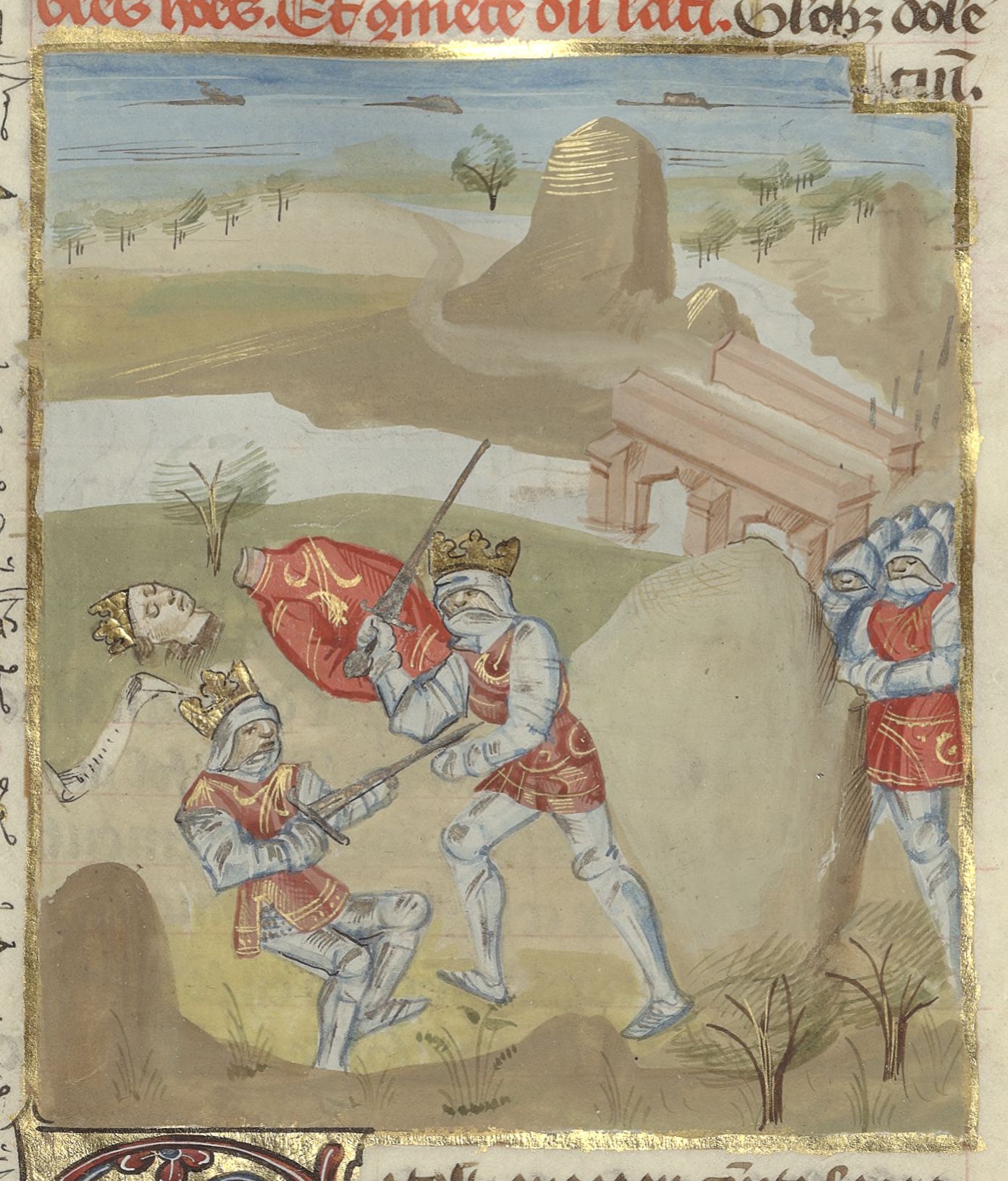 Parigi, Bibliothèque de l'Arsenal, 5192, f. 41v. Davide uccide in battaglia i re Adarezer e Adado.