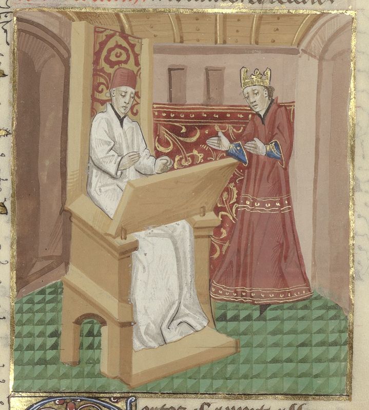 Parigi, Bibliothèque de l'Arsenal, 5192, f. 59r. Giovanni Boccaccio incontra un sovrano.