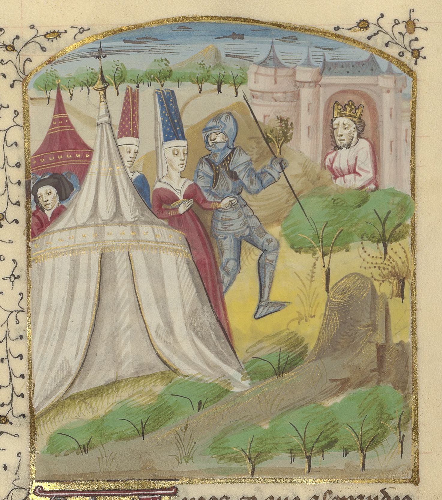 Parigi, Bibliothèque de l'Arsenal, 5192, f. 130v. Antigono cattura le mogli degli Argiraspidi; Eumene viene consegnato prigioniero al nemico.