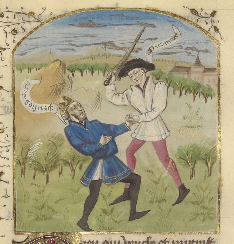 Parigi, Bibliothèque de l'Arsenal, 5192, f. 174v. Prusia di Bitinia viene assassinato da suo figlio Nicomede II.