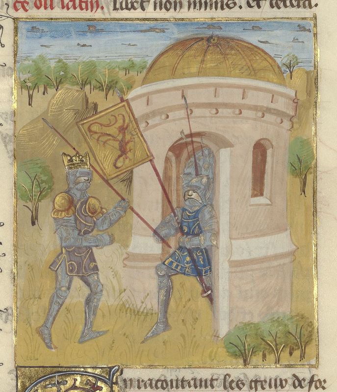 Parigi, Bibliothèque de l'Arsenal, 5192, f. 183v. Alessandro Zebenna si impadronisce dell'insegna d'oro di Giove.
