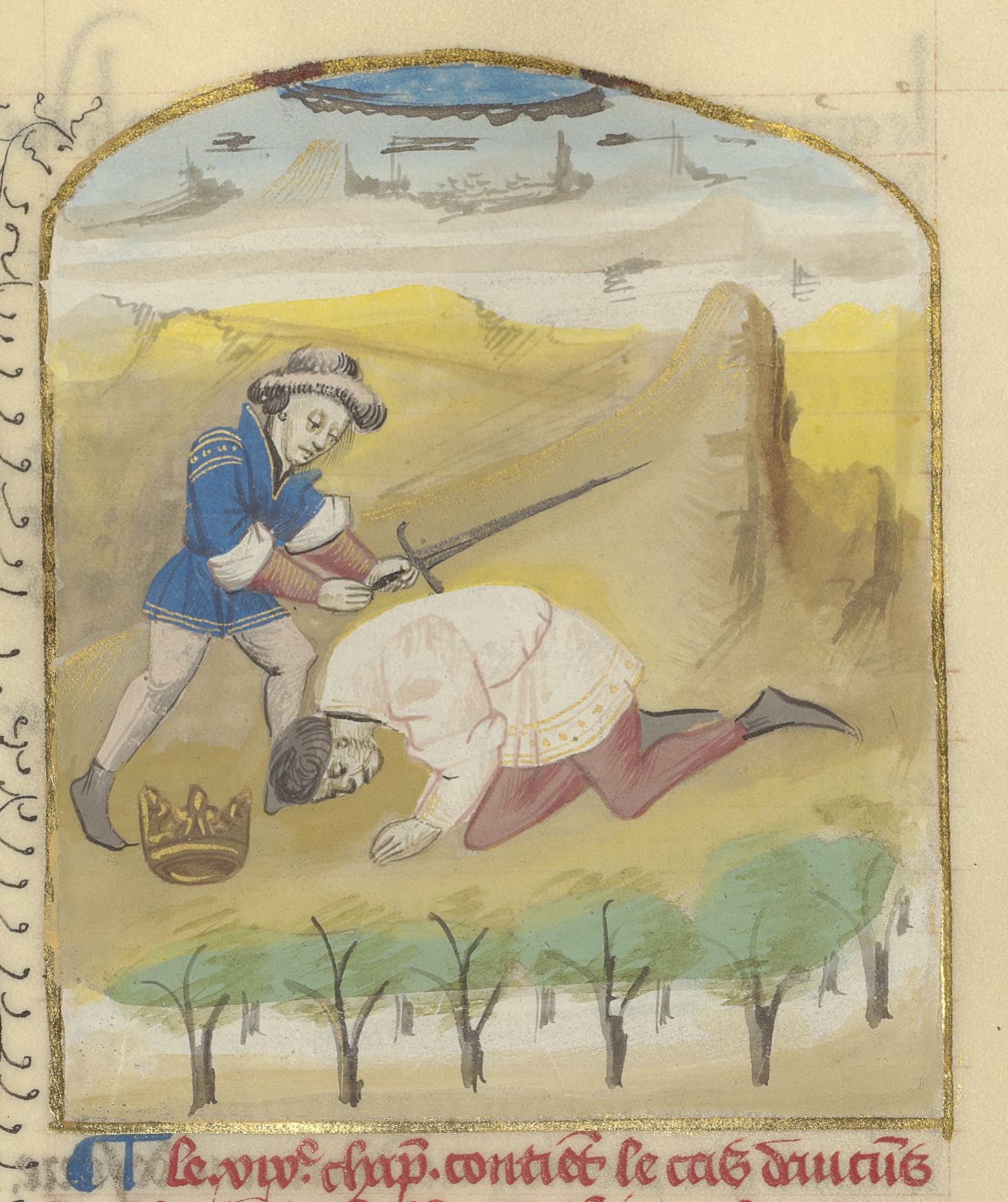Parigi, Bibliothèque de l'Arsenal, 5192, f. 184v. Giugurta, re di Numidia, viene giustiziato.
