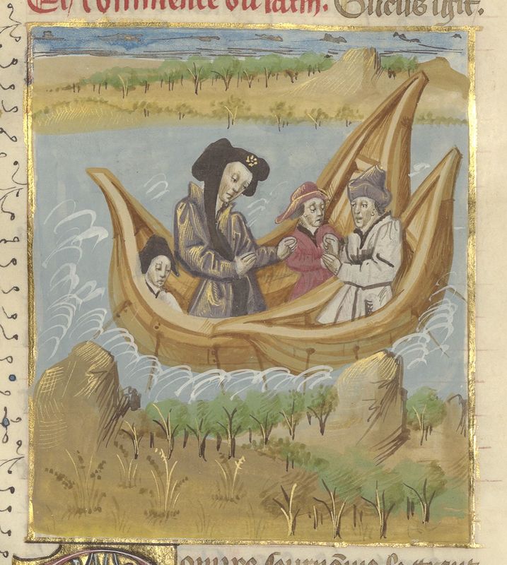 Parigi, Bibliothèque de l'Arsenal, 5192, f. 208r. Pompeo fugge per nave dopo la battaglia di Farsalo.