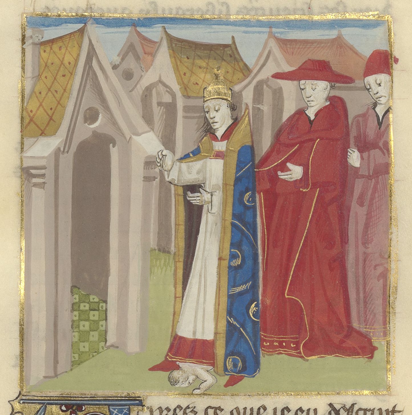 Miniatore francese (1425-1450), La papessa Giovanna partorisce durante una processione