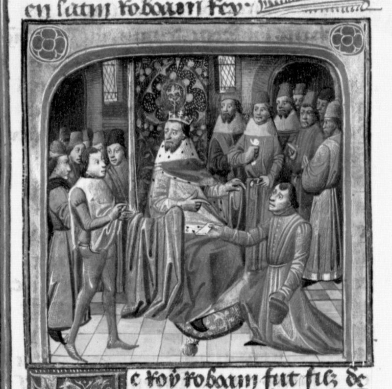 Miniatore francese (1450-1475), Roboamo ascolta le suppliche dei suoi sudditi