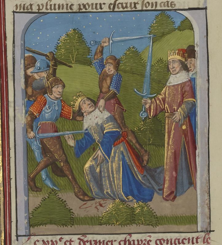 Parigi, Bibliothèque Nationale de France, Fr. 234, f. 66v. Giugurta ordina ai suoi soldati di assassinare Iempsale (?).