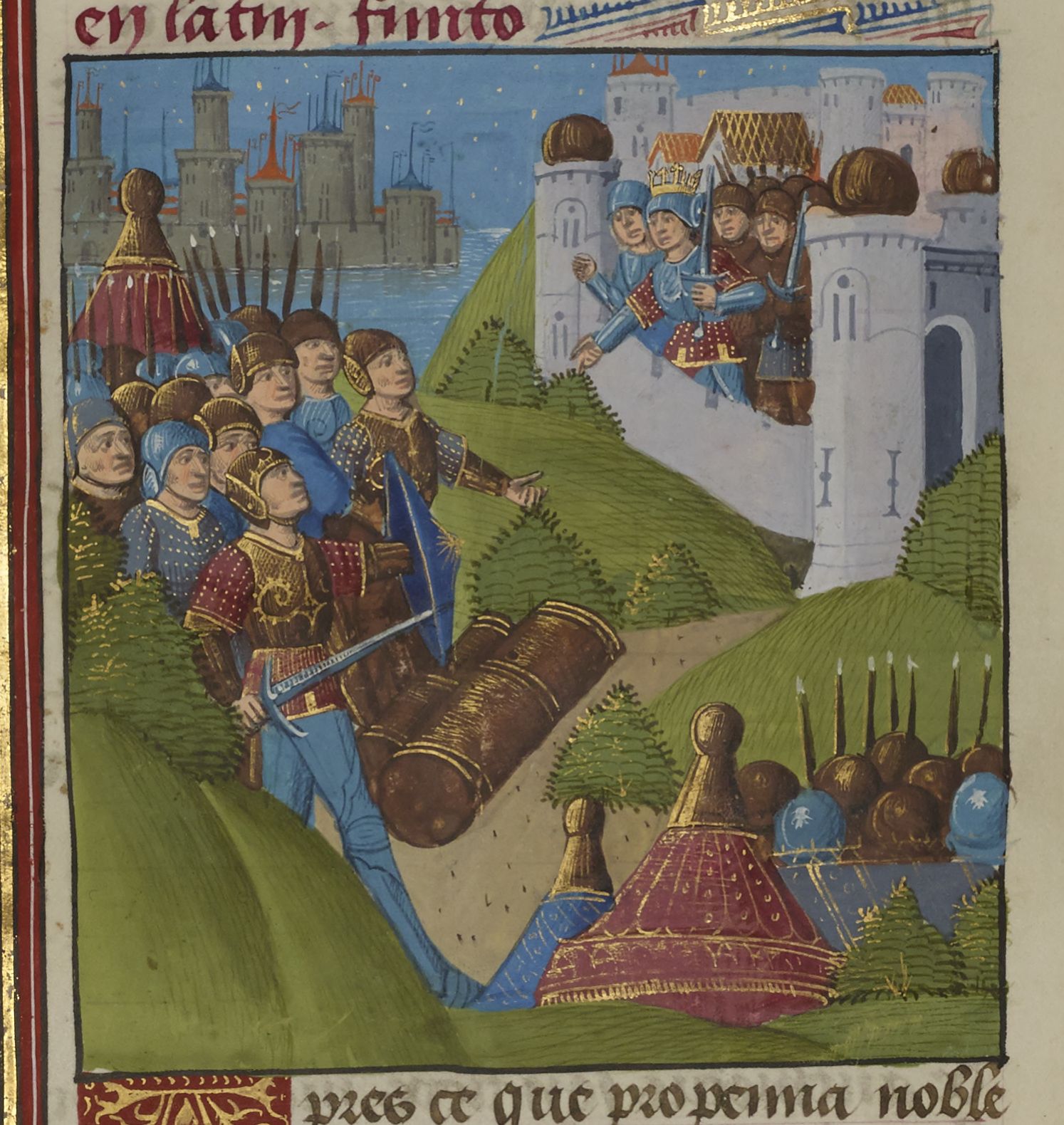 Parigi, Bibliothèque Nationale de France, Fr. 234, f. 78v. Mitridate del Ponto assediato all'interno delle mura (?).