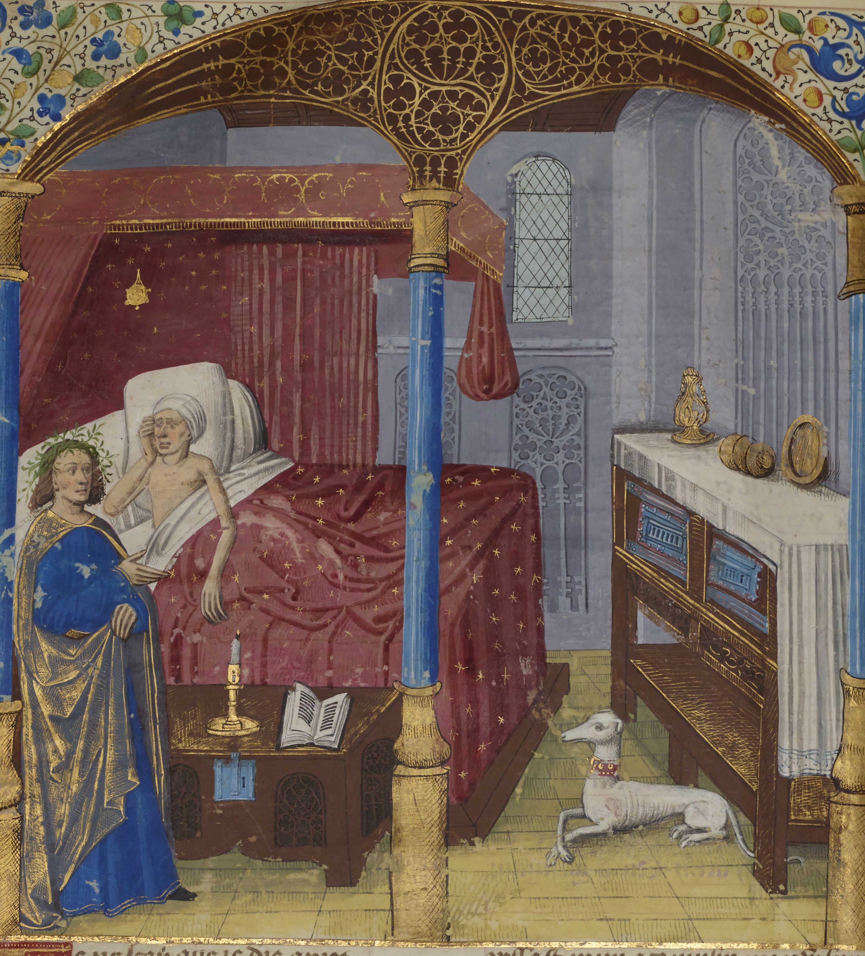 Parigi, Bibliothèque Nationale de France, Fr. 234, f. 134v. Francesco Petrarca appare in sogno a Giovanni Boccaccio.