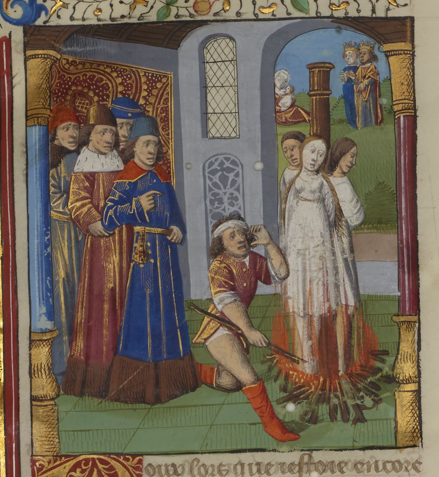 Miniatore francese (1450-1475), Filippa da Catania viene arsa sul rogo con i due figli
