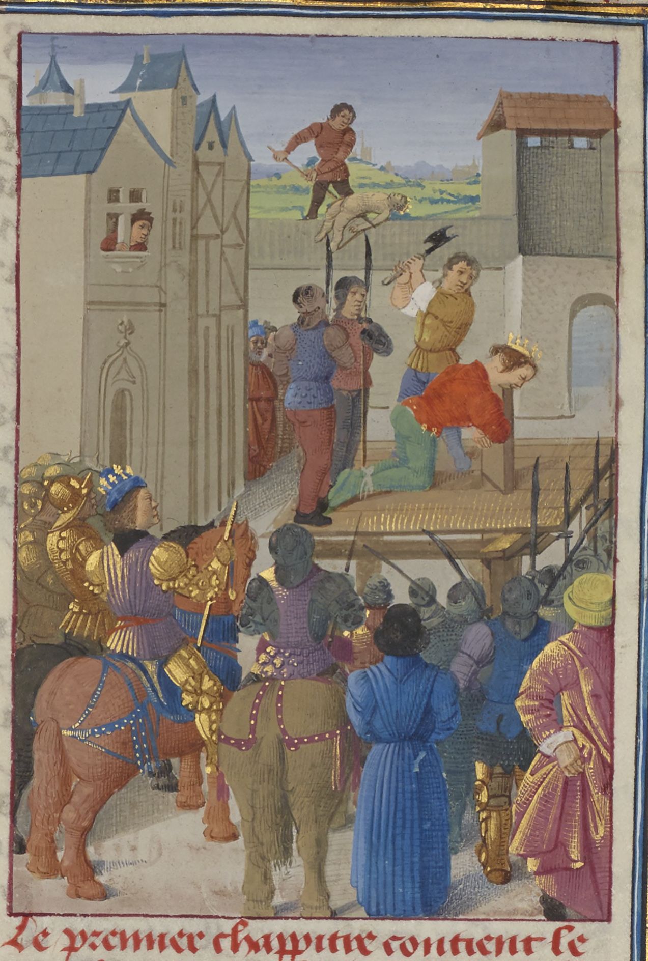 Parigi, Bibliothèque Nationale de France, Fr. 227, f. 220r. Gaio Mario si fa uccidere dal suo schiavo; la morte del figlio di Mario (?).