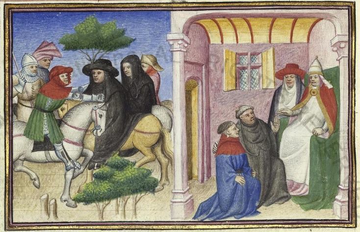 Maestro della Cité des Dames (1414-1419), Ghino di Tacco cattura l'abate di Clignì; l'abate intercede per Ghino presso il Papa